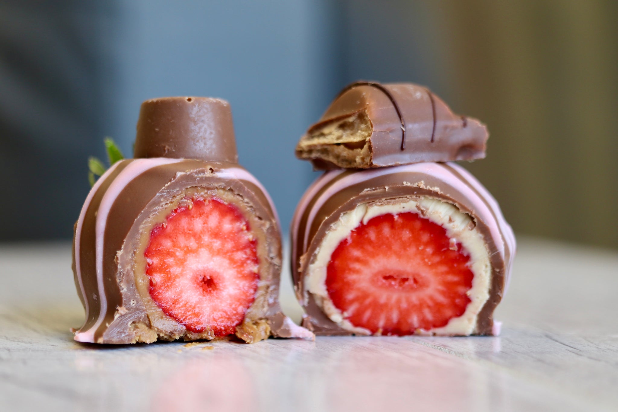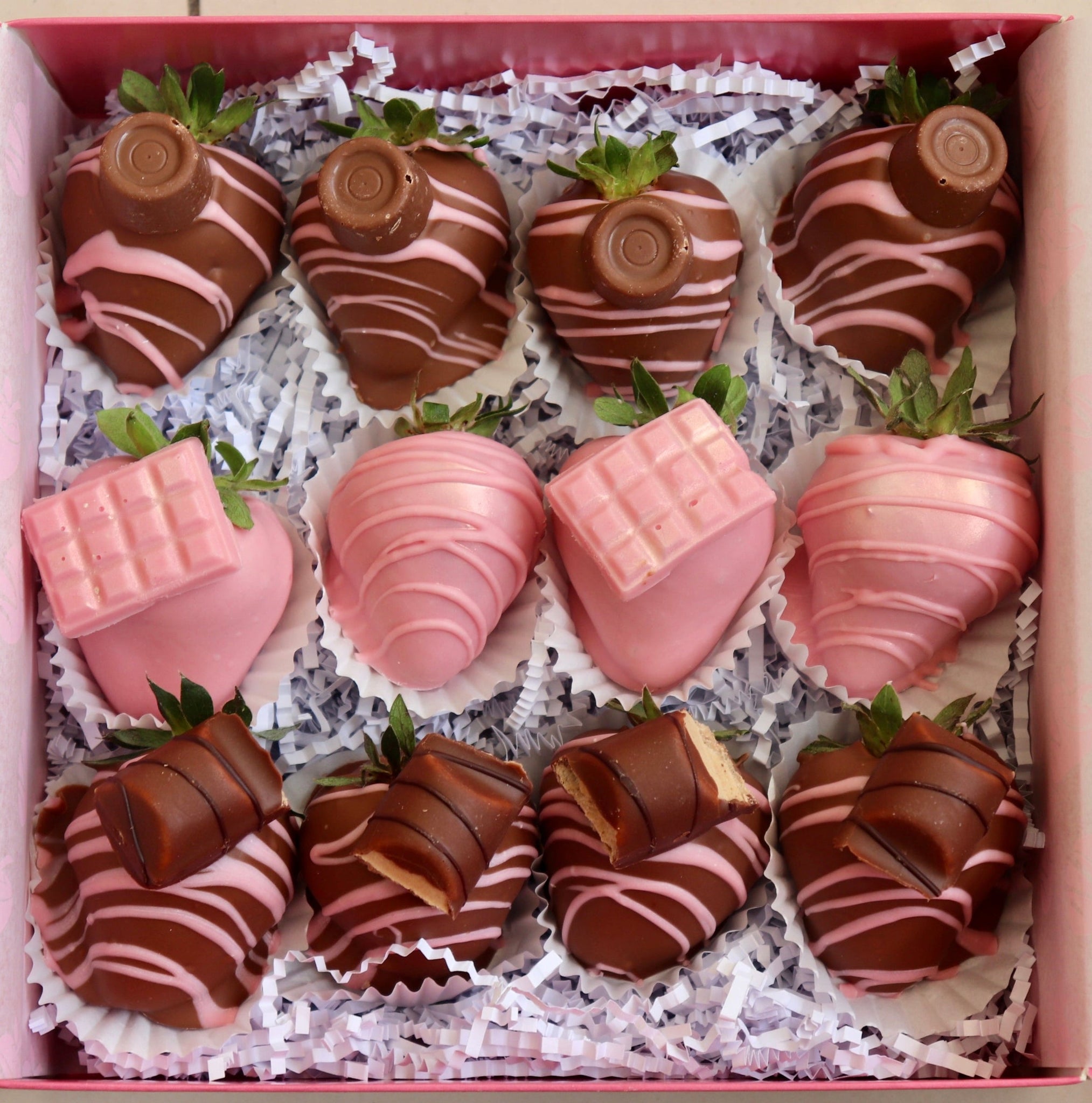 X4 dipped in pink chocolate topped with our pink chocolate roses.